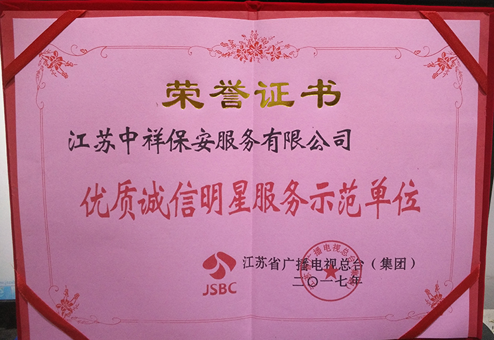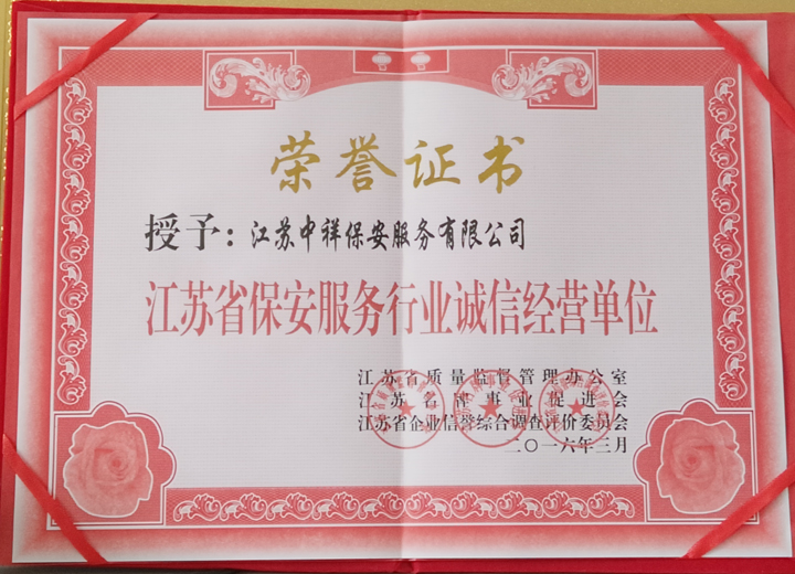 江蘇中祥保安服務(wù)有限公司是經(jīng)江蘇省公安局廳,市公安局批準(zhǔn)的具有合法資質(zhì)的保安服務(wù)公司,屬上海智成旗下子公司,我司從2003年以來(lái)至今已有十幾年的管理經(jīng)驗(yàn),多年來(lái)一直專(zhuān)業(yè)從事企業(yè)安全外包、大型活動(dòng)現(xiàn)場(chǎng)保衛(wèi)、長(zhǎng)短期保鏢、緊急危機(jī)處理、技術(shù)防范等全面安全事務(wù)管理服務(wù),保潔服務(wù),物業(yè)管理服務(wù),取得了驕人的業(yè)績(jī),并受到客戶的高度贊揚(yáng)。